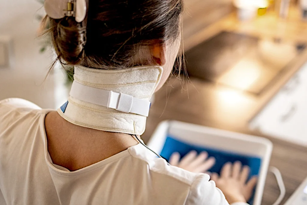 Die Nackenelektrode ist so geformt, dass sie sich gut an die Rundungen von Hinterkopf, Hals und Schultern anpasst.