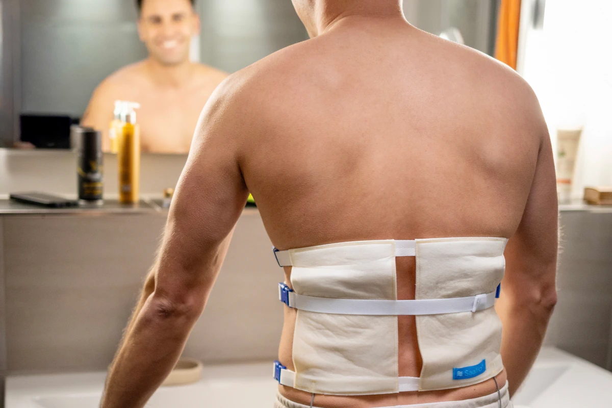 Schwitzen an Rücken, Brust und Bauch betrifft oft größere Hautflächen. Deshalb bestehen die Saalio-Körperelektroden aus zwei Elektroden, damit eine größere Fläche behandelt werden kann.