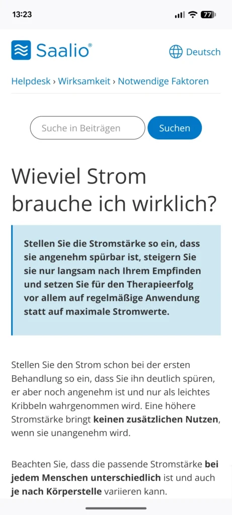 Der Saalio® Helpdesk beantwortet außerdem Fragen zur Anwendung, zum Beispiel ob und wie das Saalio Gerät auch an anderen Körperstellen genutzt werden kann. Dort finden Sie viele hilfreiche Informationen rund um die Anwendung.